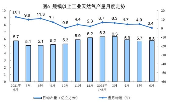 1—6月份,生產(chǎn)天然氣1096億立方米,同比增長(zhǎng)4.9%。進(jìn)口天然氣5357萬(wàn)噸,同比下降10.0%。